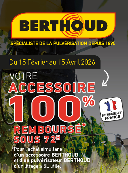 pour tout achat simultané d’un accessoire Berthoud et d’un pulvérisateur Berthoud d’un litrage > 5L utile.