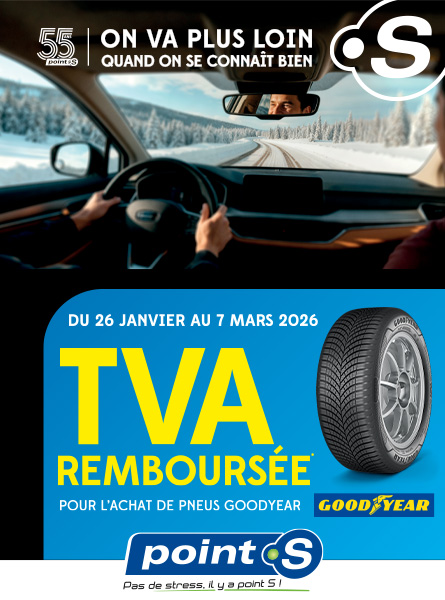 Vous venez d’acheter et de monter 2 ou 4 pneus GOODYEAR dans l’un des Point S en France ? A cette occasion, Point S vous rembourse la TVA sur vos pneus GOODYEAR par virement bancaire. Et vous permet de participer automatiquement au tirage au sort pour gagner un des 55 bons KADEOS mis en jeu !