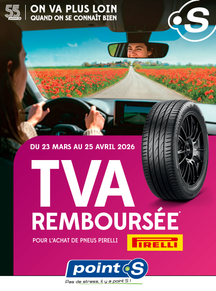 Vous venez d’acheter et de monter 2 ou 4 pneus PIRELLI dans l’un des Point S en France ? A cette occasion, Point S vous rembourse la TVA sur vos pneus PIRELLI par virement bancaire. Et vous permet de participer automatiquement au tirage au sort pour gagner un des codes cadeaux disponibles sur un catalogue en ligne mis en jeu !